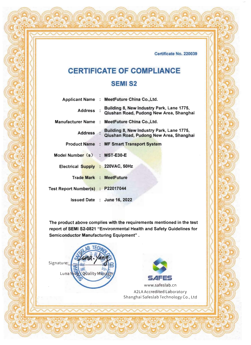 Since 2018, MiFET has obtained International Organization for Standardization (ISO) certifications for Quality Management System (ISO 9001), Environmental Management System (ISO 14001) and Occupational Health and Safety Management System (ISO 45001). In the field of AMHS product technology system, we follow the standard communication protocols for semiconductor equipment, including SEMI E37, E82, E30, E84, E10, etc., so that it is easy to connect to semiconductor fab MES system to realize data interaction.
